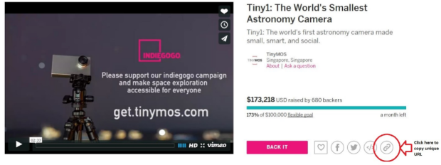 Visit the Tiny1 campaign page on Indiegogo and look beside the main video to share and copy your unique URL.